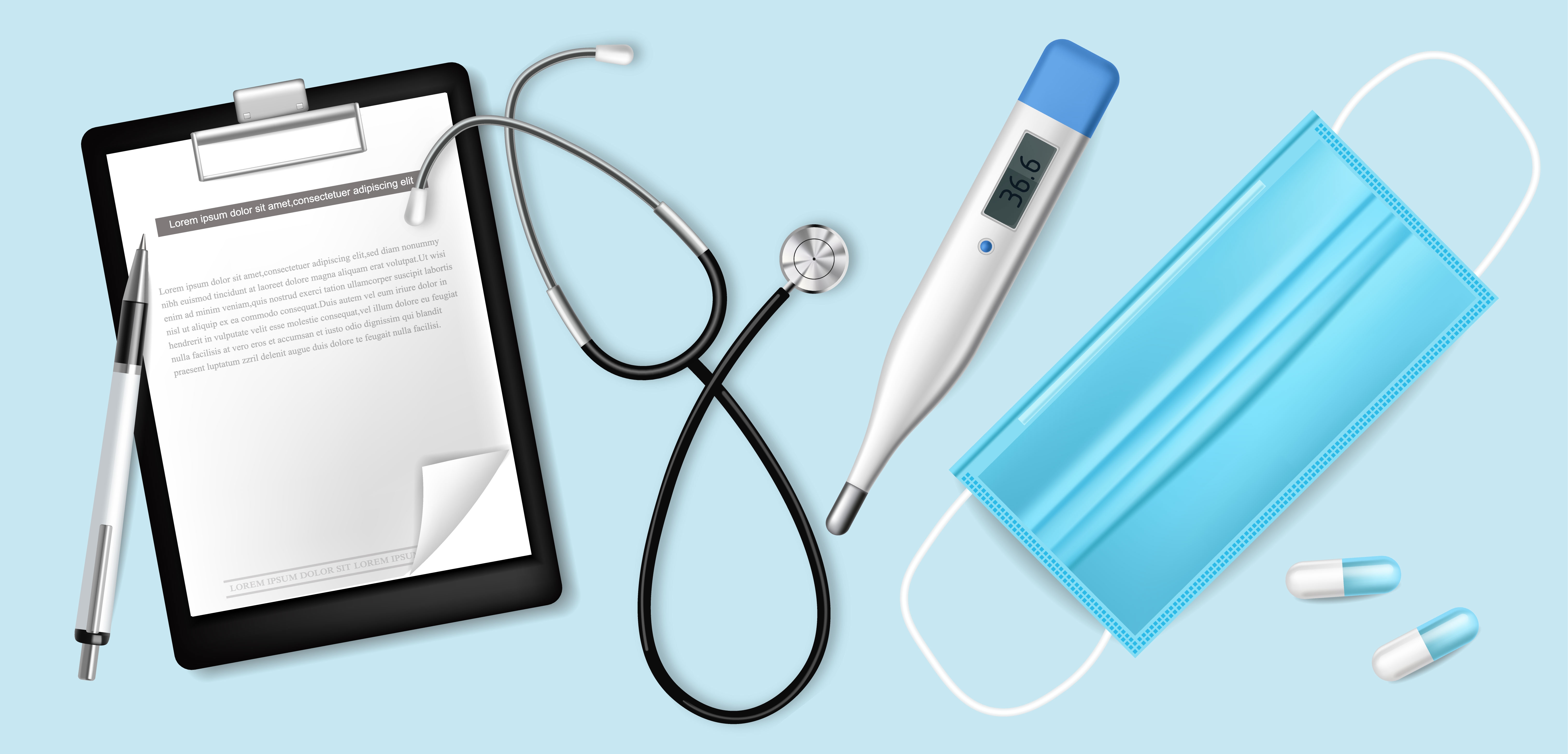 1 张 时尚简洁的医生记事本与温度计口罩素材 : 988337