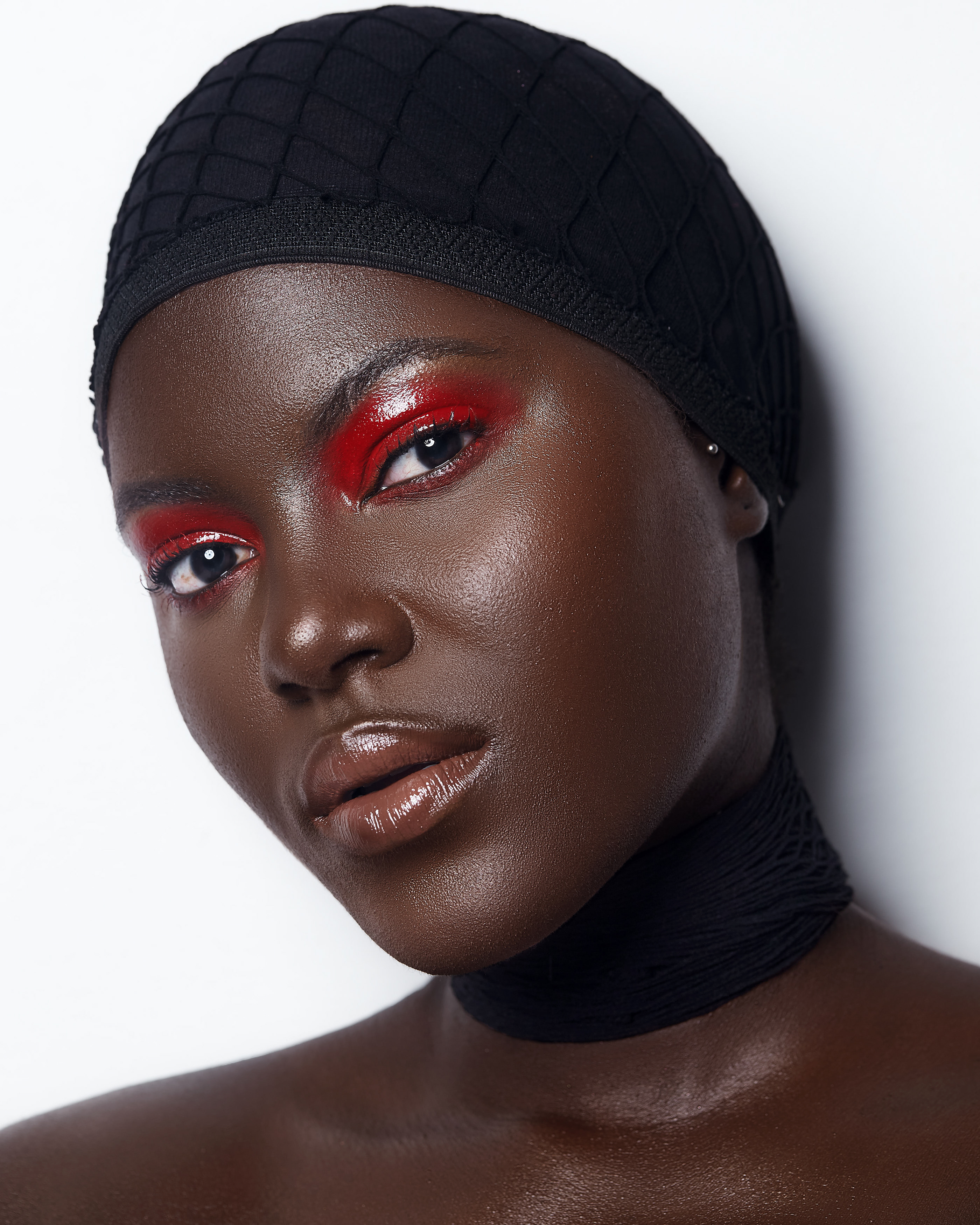 5 张 油滑黑珍珠的魅力-高光泽度的流行视觉人像,宝石色调的眼影 : 915244