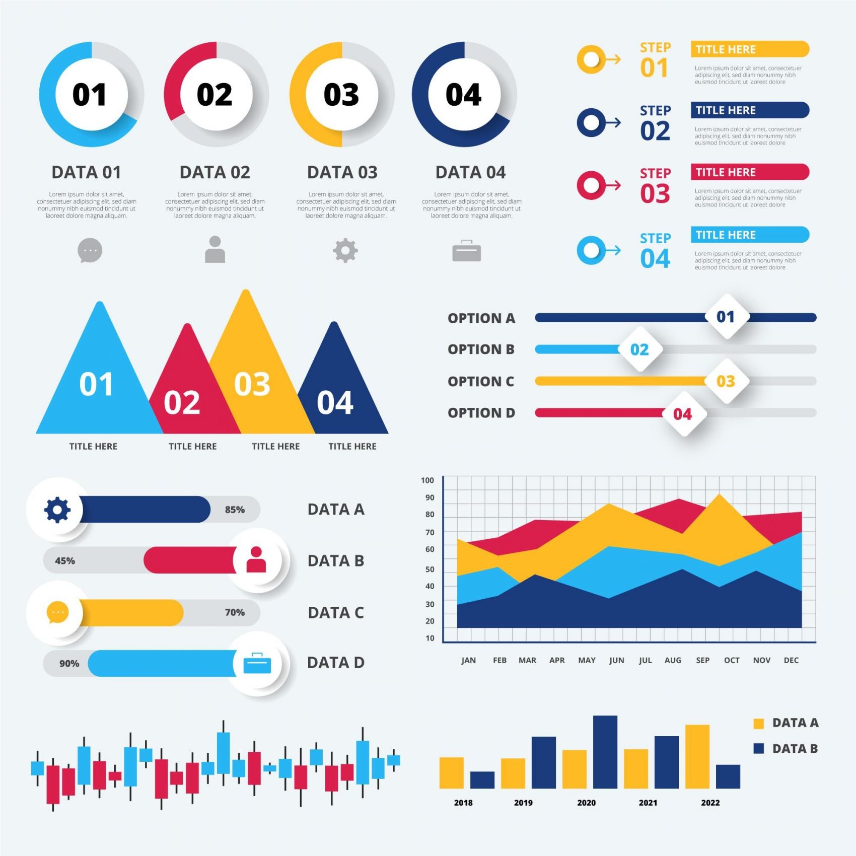 1 张 多彩简洁的数据信息图表矢量素材 : 981918