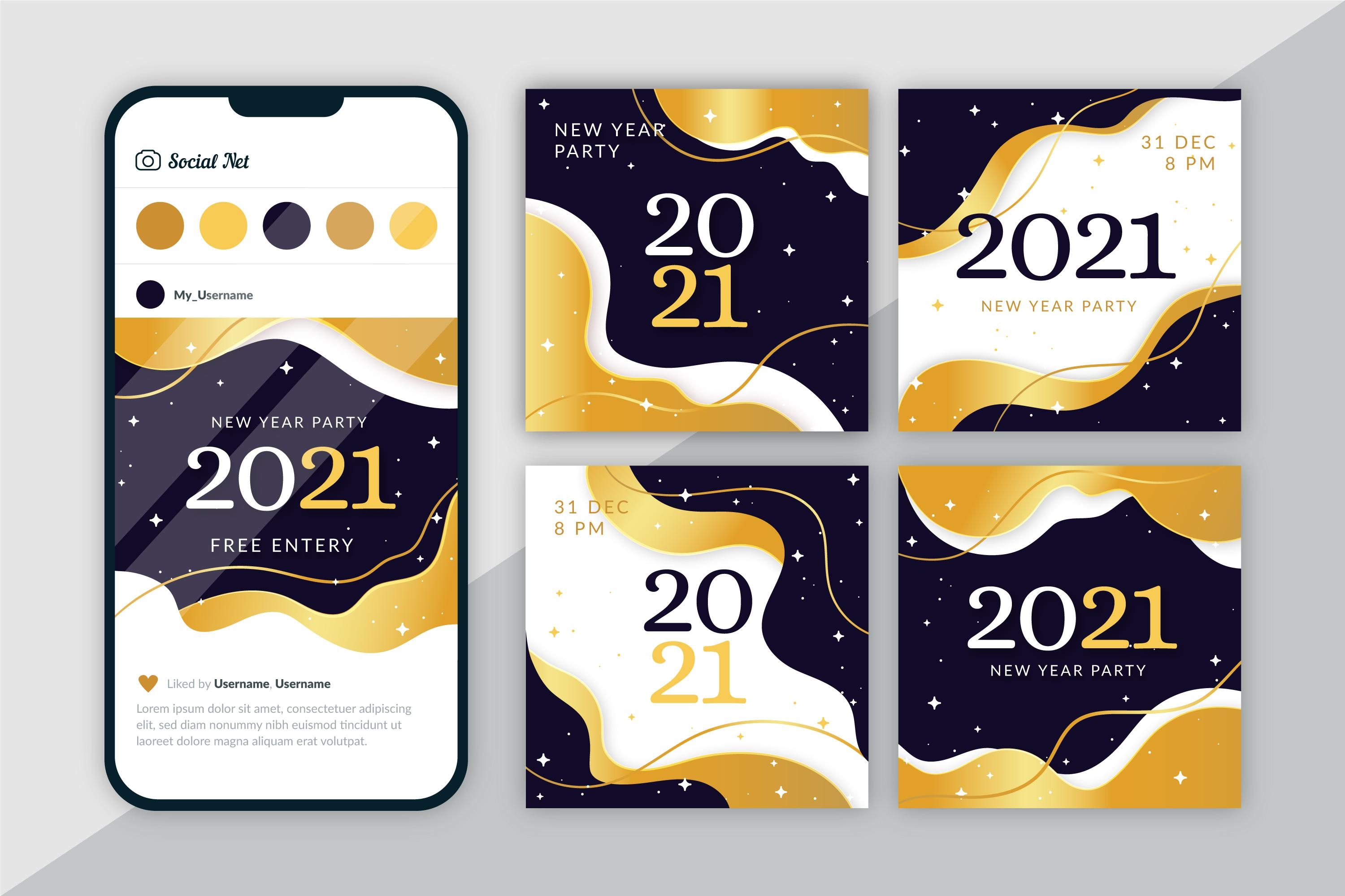 1 张 2021时尚曲线美新年卡片素材下载 : 992532