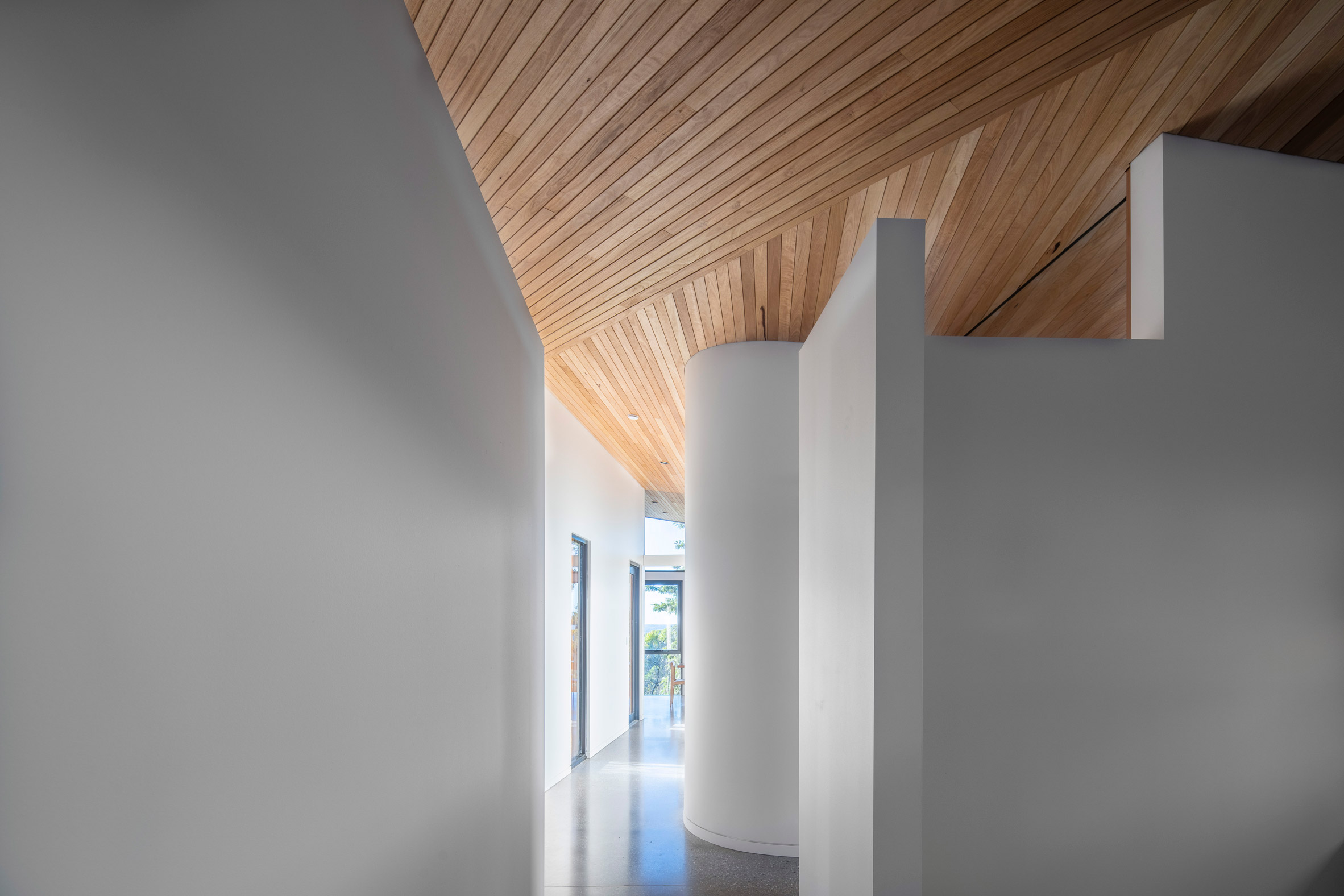 厨房,用餐区和休息室都占据了房屋的中央部分,书房位于一侧的部分遮蔽区域