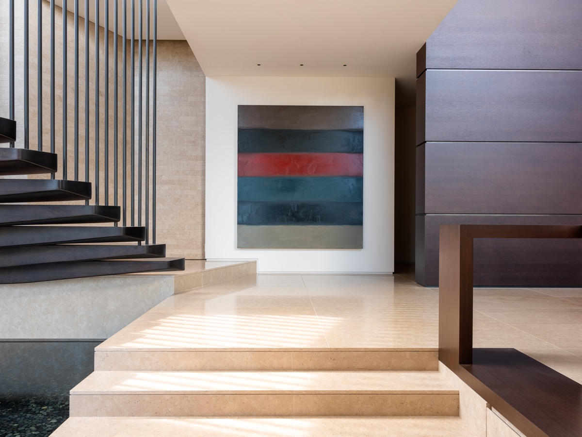 7 张 Montee Karp别墅酒店建筑-2200平方英尺的住宅,坐落在美国马里布的一个山坡上,可俯瞰太平洋。里面是画廊般的居住空间设计,以适应客户的广泛当代艺术收藏审美。采用悬臂钢,每个图案都是自定义激光切割,光线天窗通过多孔楼梯投射的阴影是千变万化的纹理,让整个空间充满艺术味 : 943384