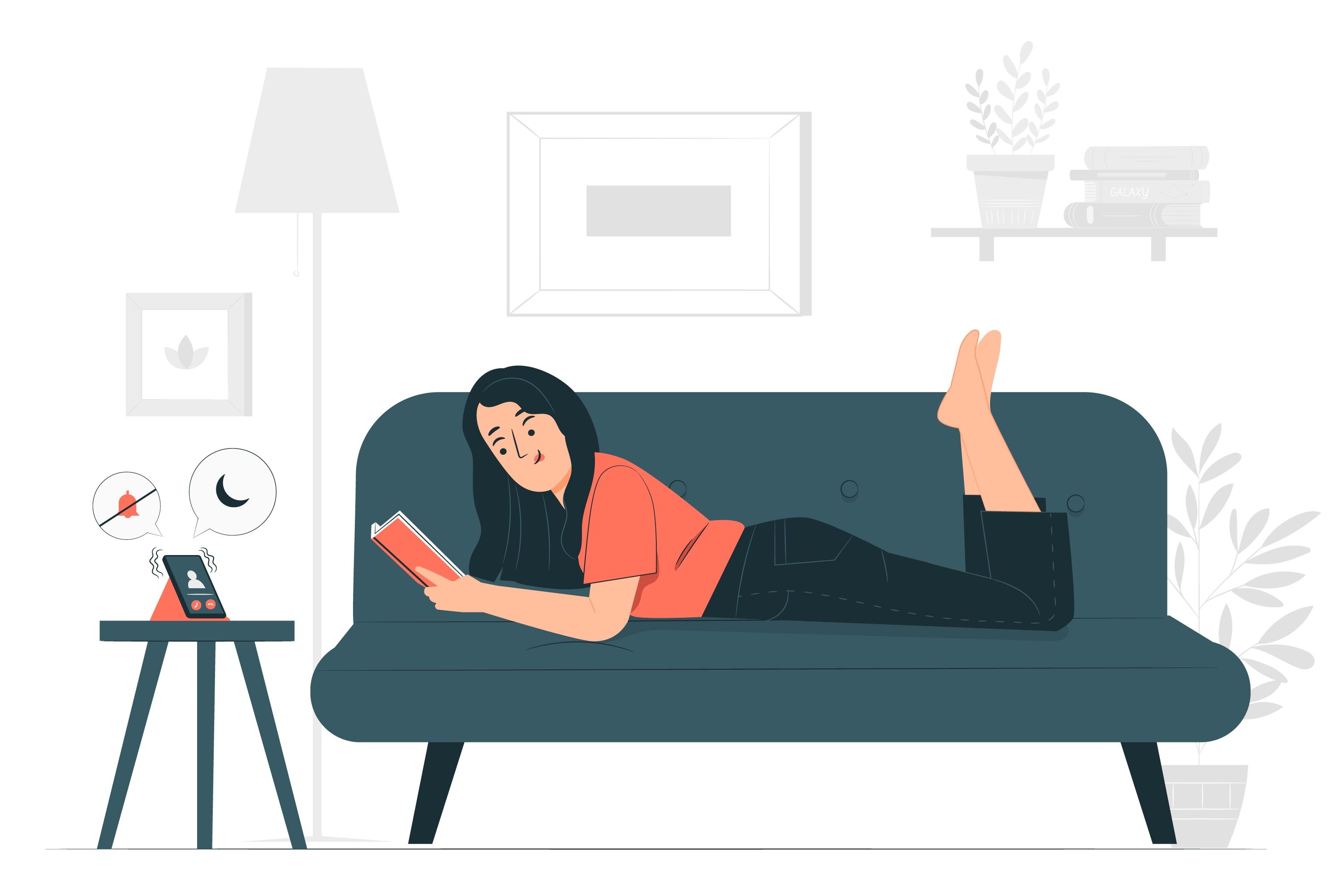 1 张 趴在沙发上看书阅读的女子 : 994753