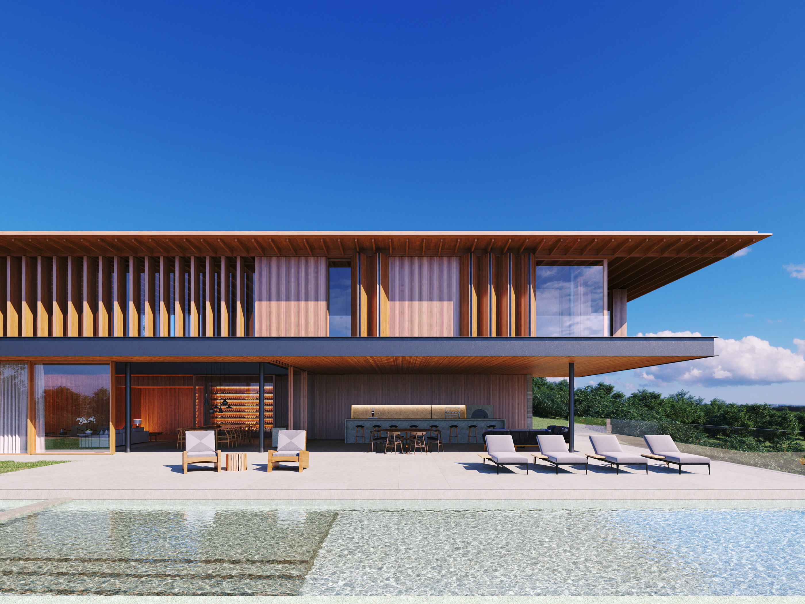 10 张 XAN混凝土板条建筑-位于巴西南部,靠近海滩,上层悬垂展台被掩盖在背后的一层木条板上,一楼是专门为家庭社区活动设计,而楼上是卧室,建筑师选择了使用不同的外部材料,以突出这种差异,是一个完全自由享受户外生活空间的好地方 : 932407