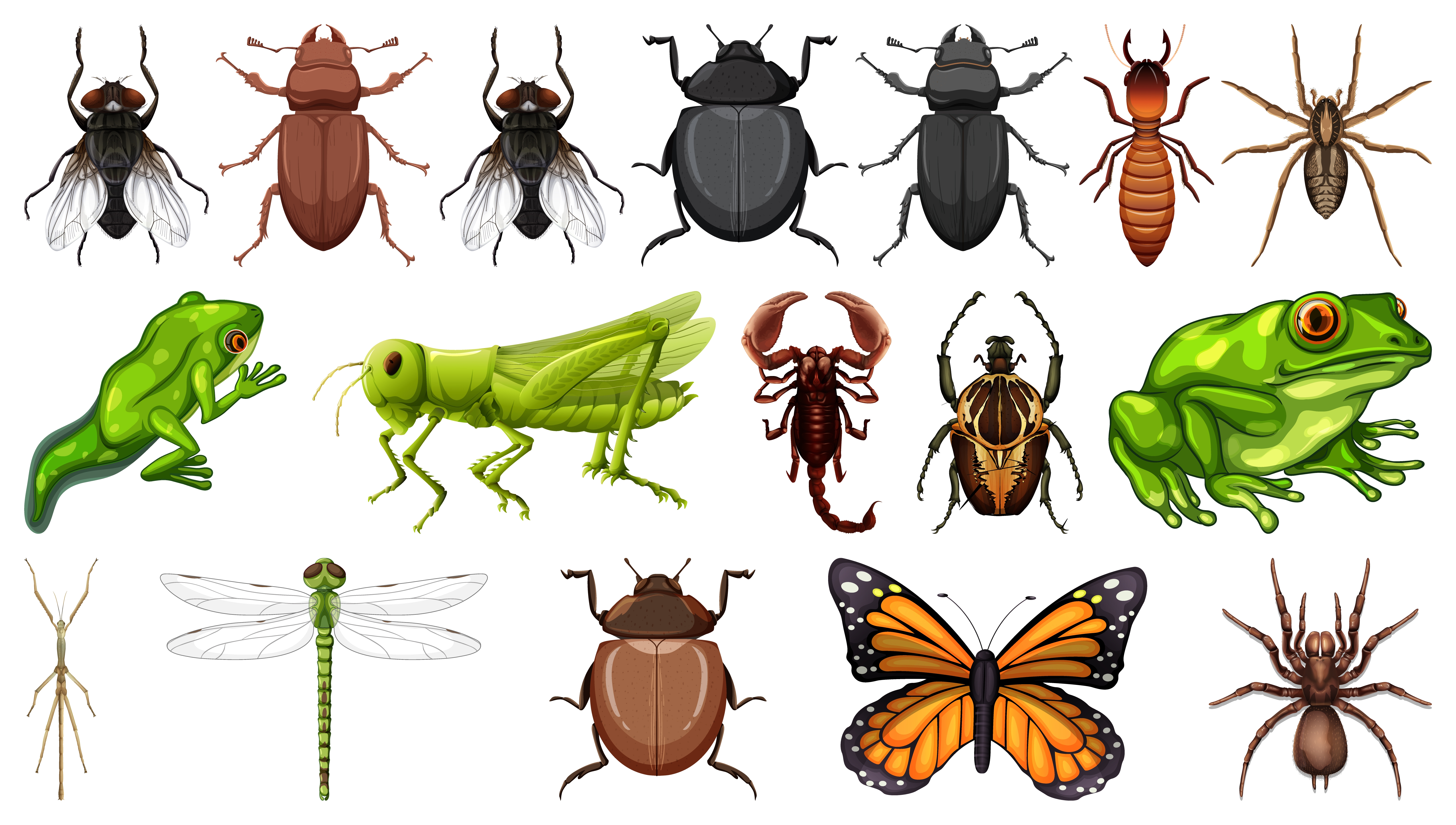 1 张 逼真的卡通昆虫两栖动物素材下载 : 999736