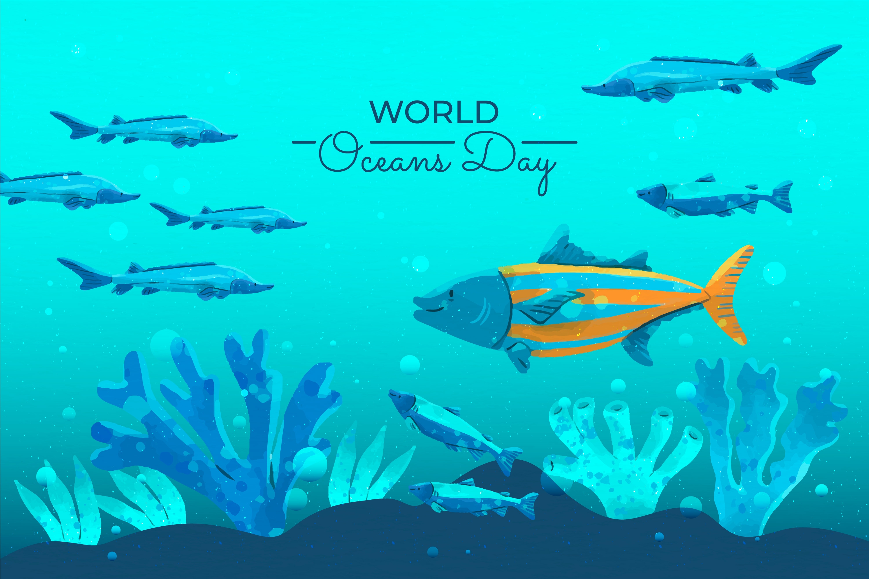 1 张 卡通手绘海洋生物鱼群素材下载 : 1000955