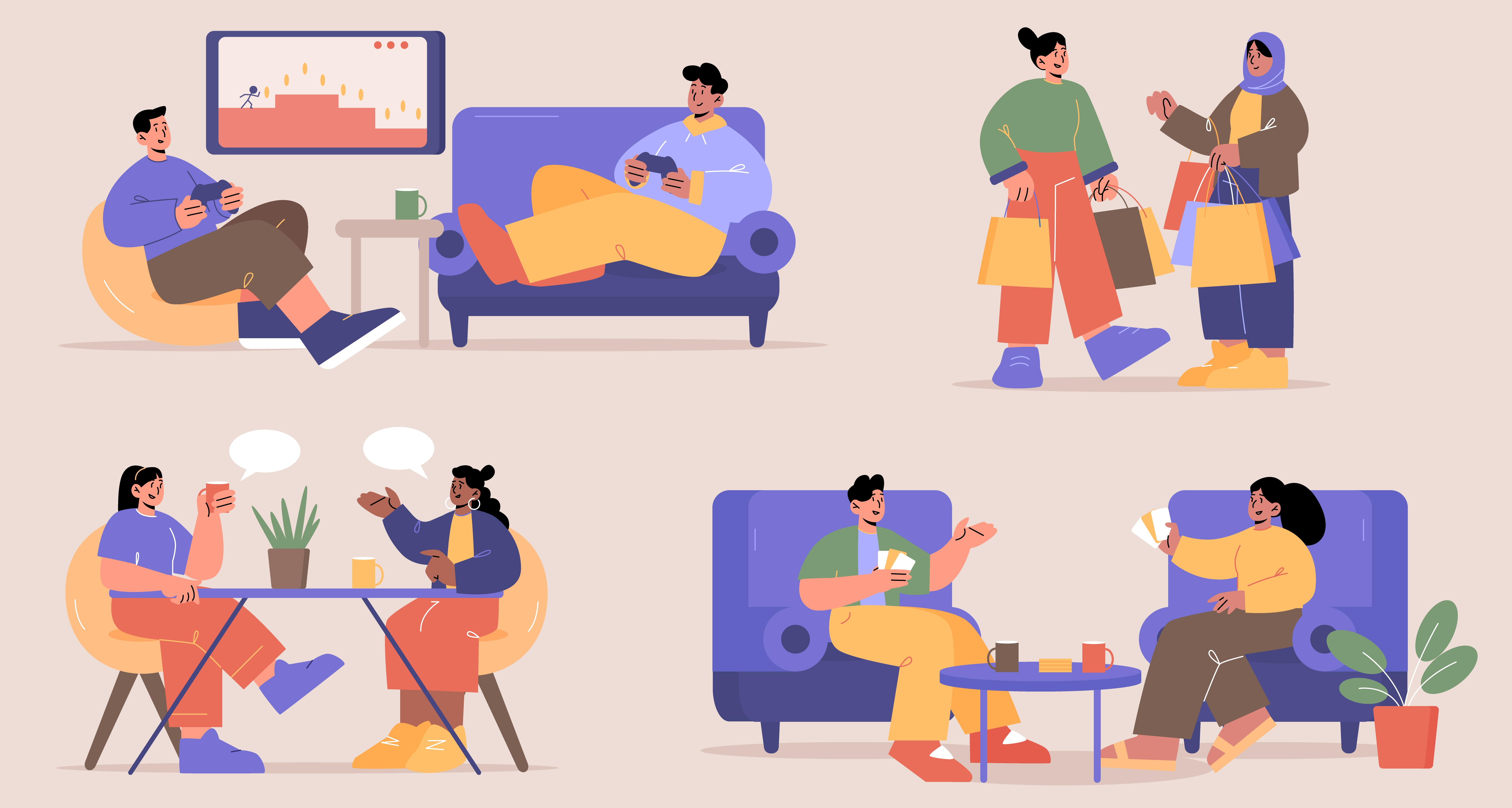 1 张 卡通开心玩游戏交谈喝茶逛街场景的素材下载 : 1002349