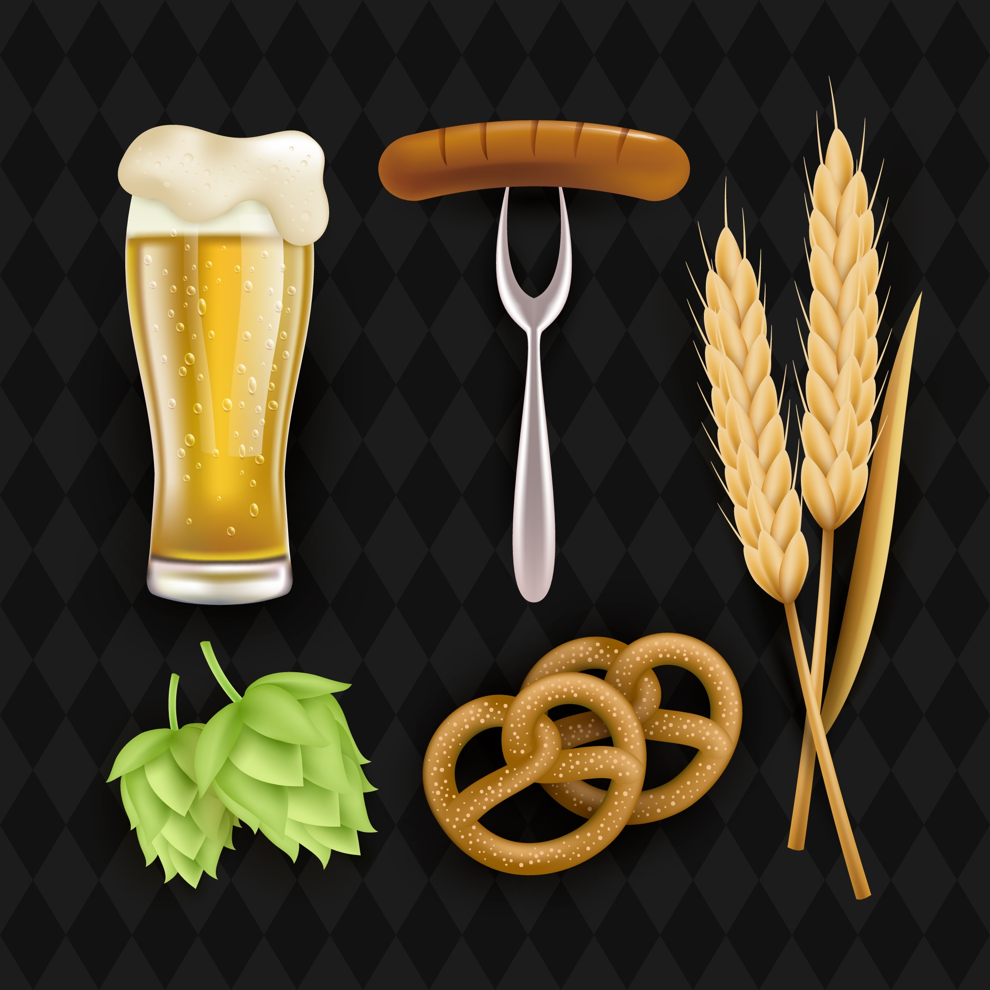 1 张 黑色背景中的啤酒小麦火腿肠麦穗素材下载 : 1003504