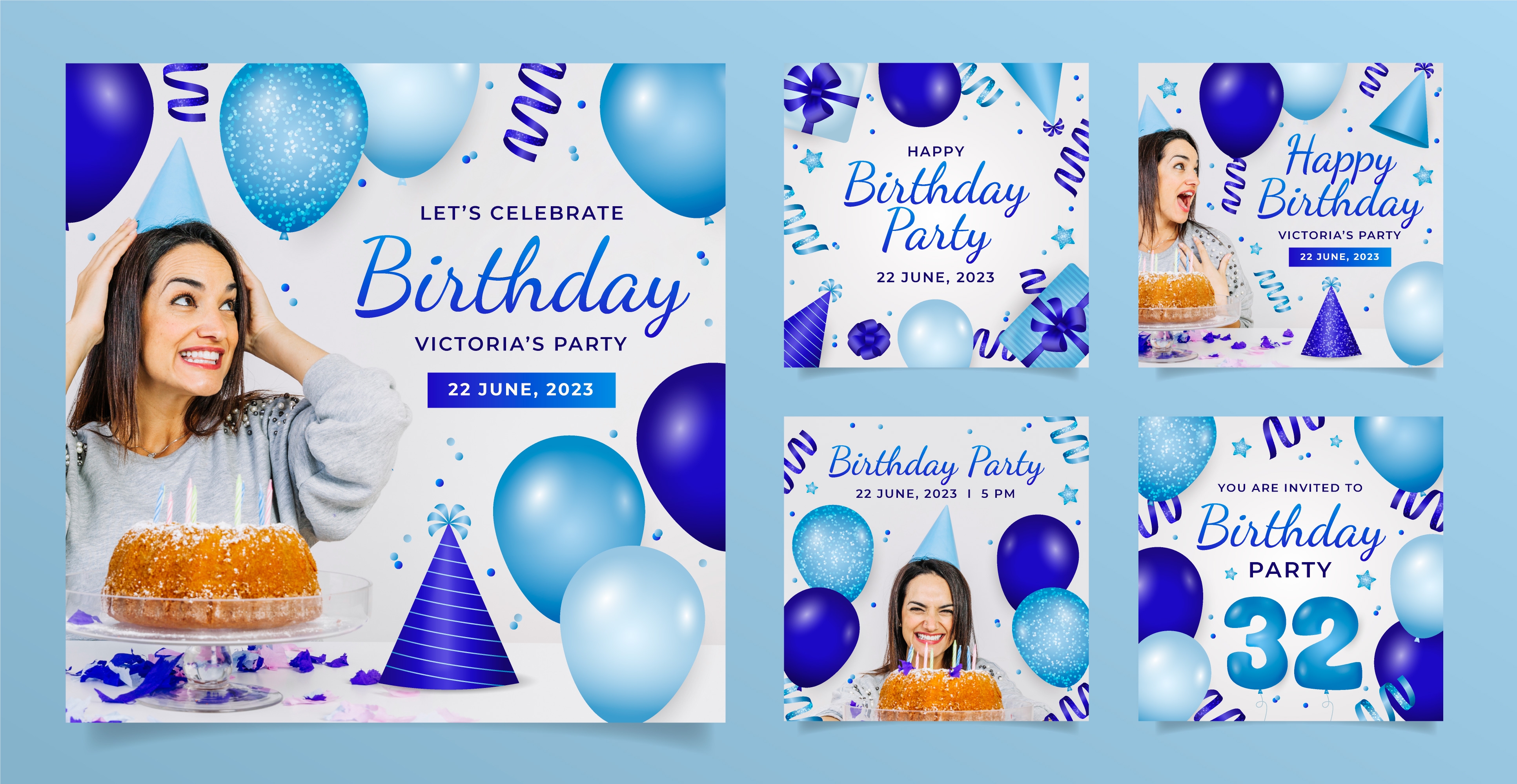 1 张 蓝色气球氛围的生日设计模板 : 1006672