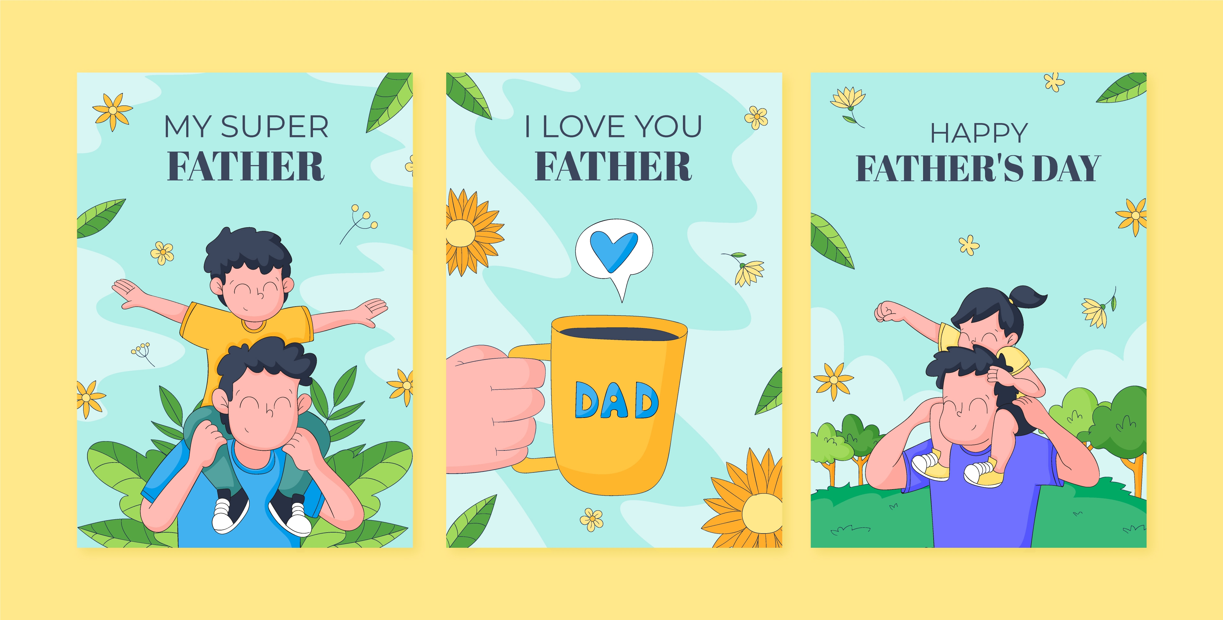 1 张 手绘绿色清爽型父亲节亲子庆祝活动贺卡 : 1007188
