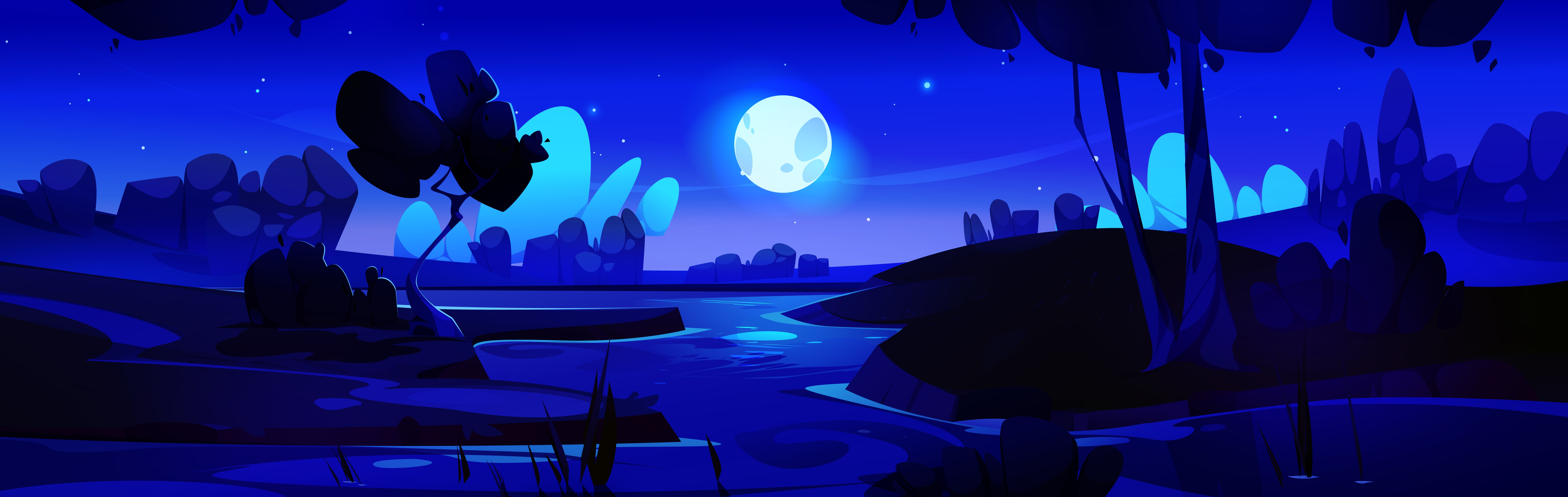 1 张 满月之夜-湖边的绿色沼泽香蒲风景素材下载 : 1007505