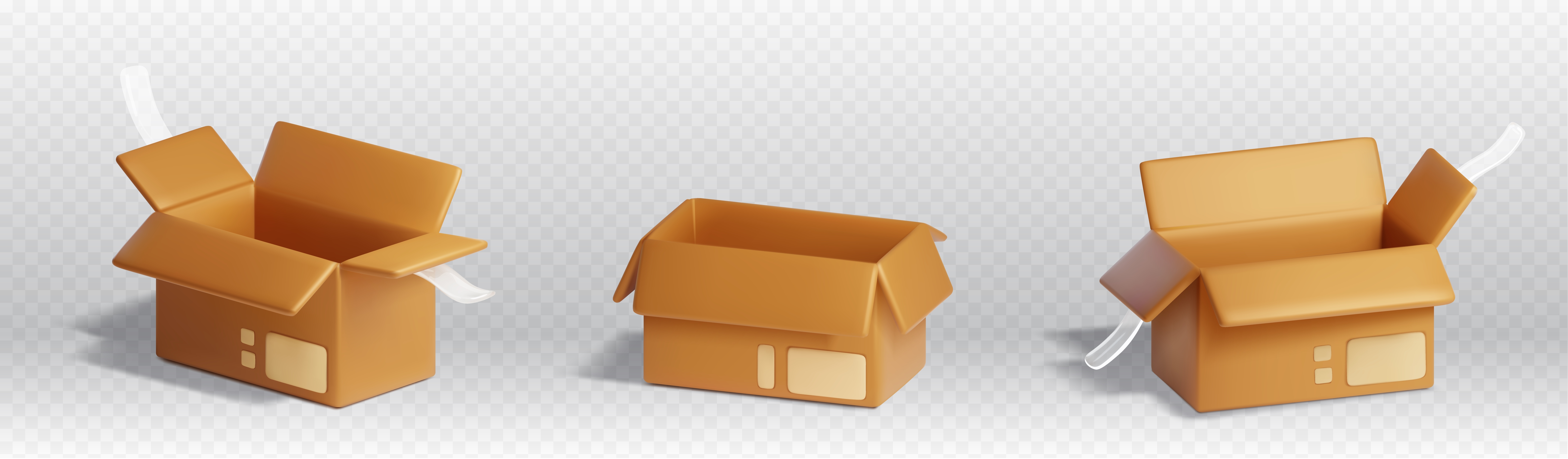 1 张 3只3D立体金黄色纸箱素材 : 1009309