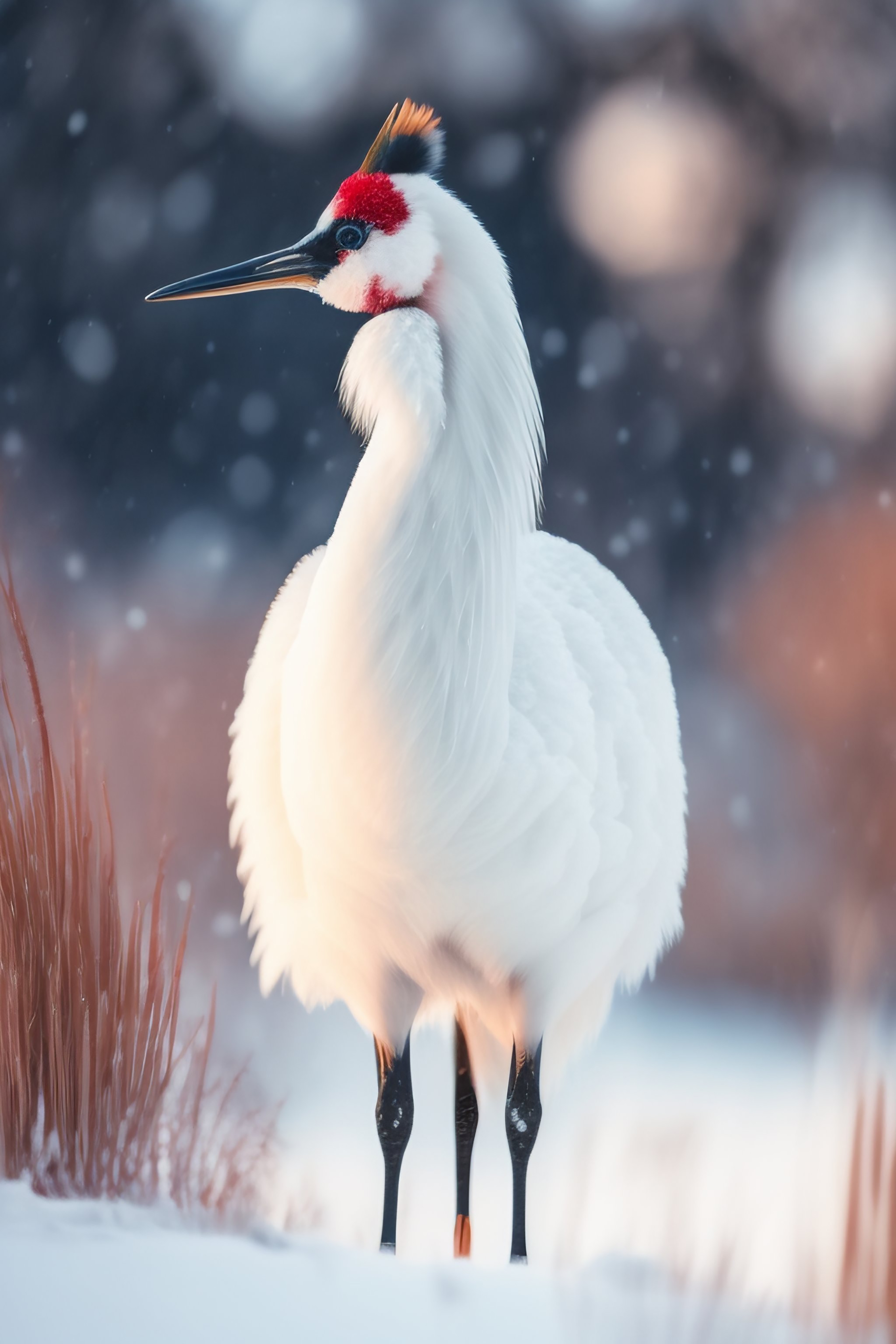 1 张 冬季雪地中的白鹤鸟 : 1010905