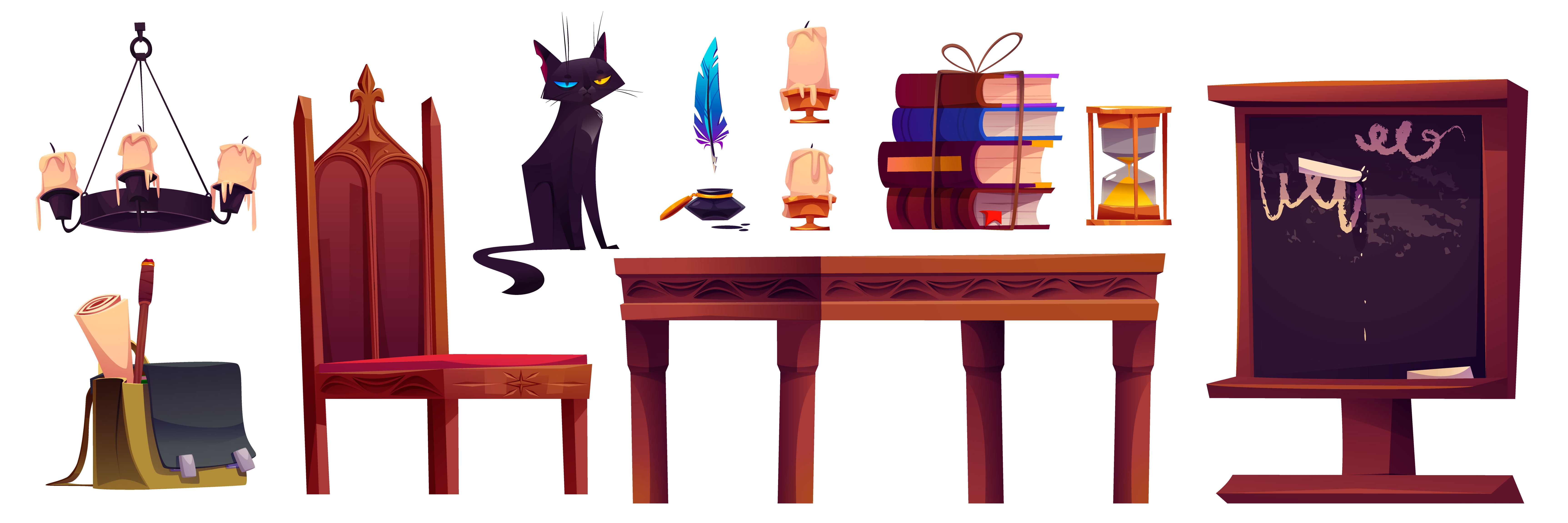 1 张 卡通办公桌与书籍蜡烛沙漏素材 : 1011240
