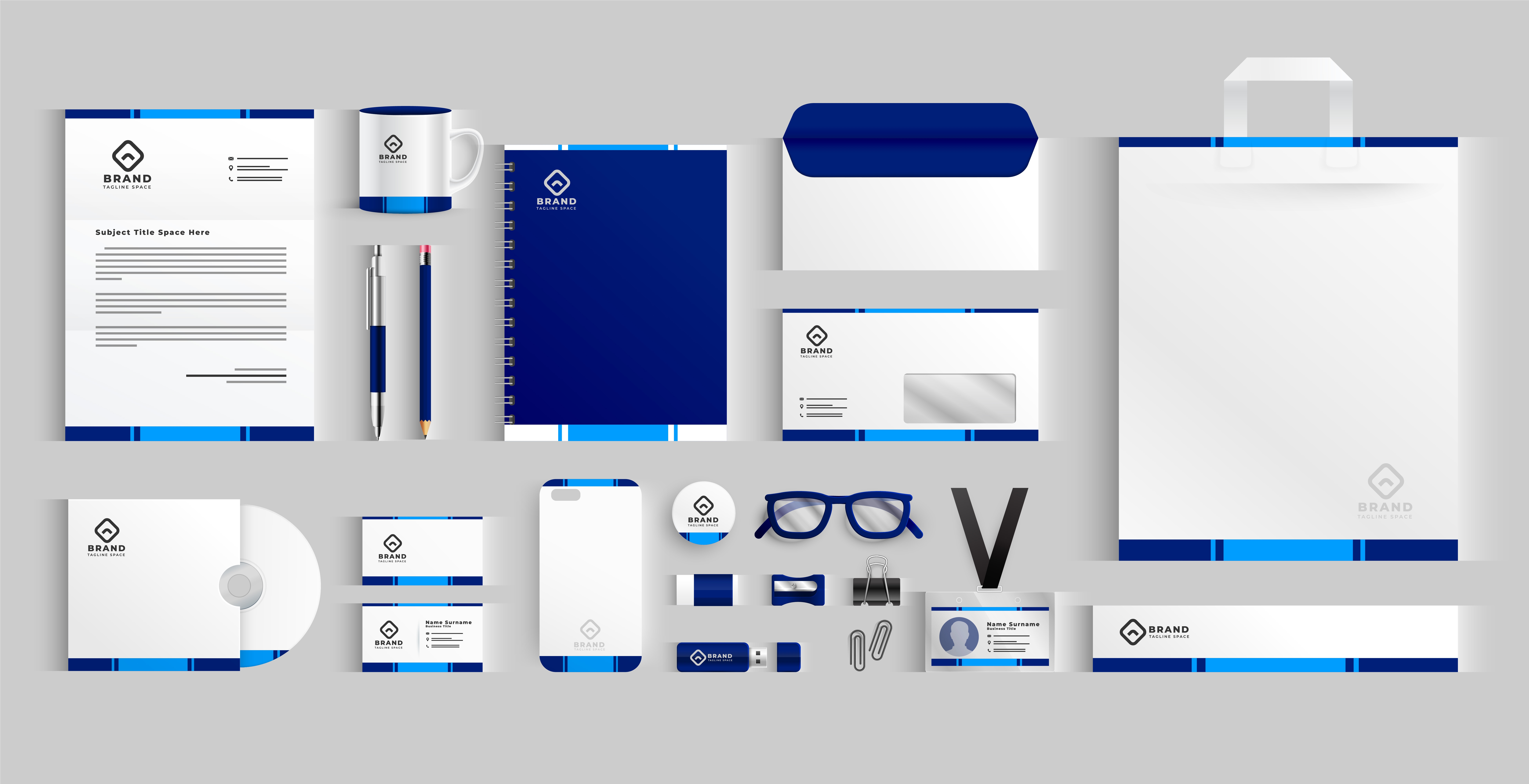 1 张 白蓝品牌企业文具横幅矢量素材 : 1009739